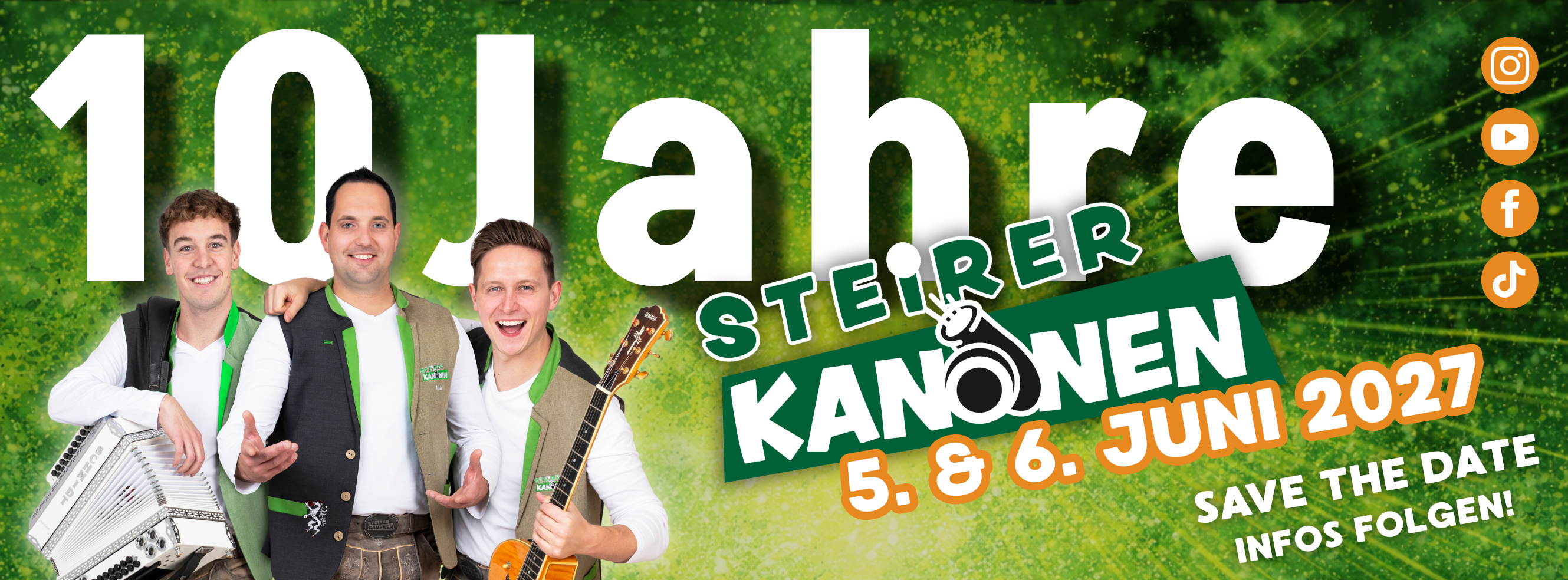 Herzlich willkommen auf der offiziellen Webseite der Steirerkanonen! Eine junge, dynamische Gruppe, die mit ihrer mitreißenden Partymusik durch ganz Österreich zieht. Mit einem Mix aus bekannten Hits und eigenen Interpretationen sorgen sie für Bombenstimmung.